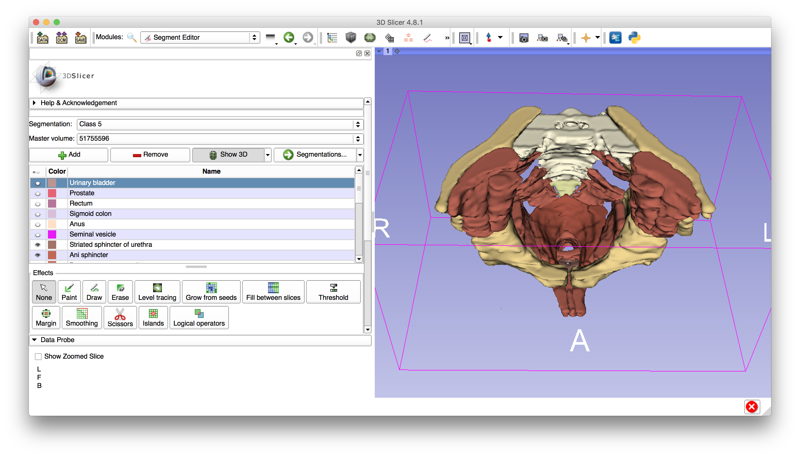 Male pelvis segmentation made in 3D Slicer