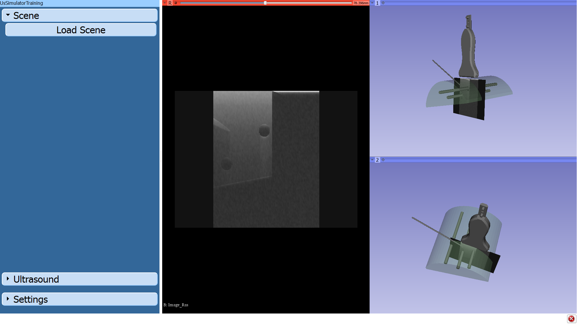 The main goal of this project is to develop a custom graphic user interface (GUI) for an US simulation training system. The GUI should be friendly and attractive for clinicians, trainers and students. The US simulation system was proposed in NA-MIC 27th Project Week and developed in collaboration with the Perklab team.