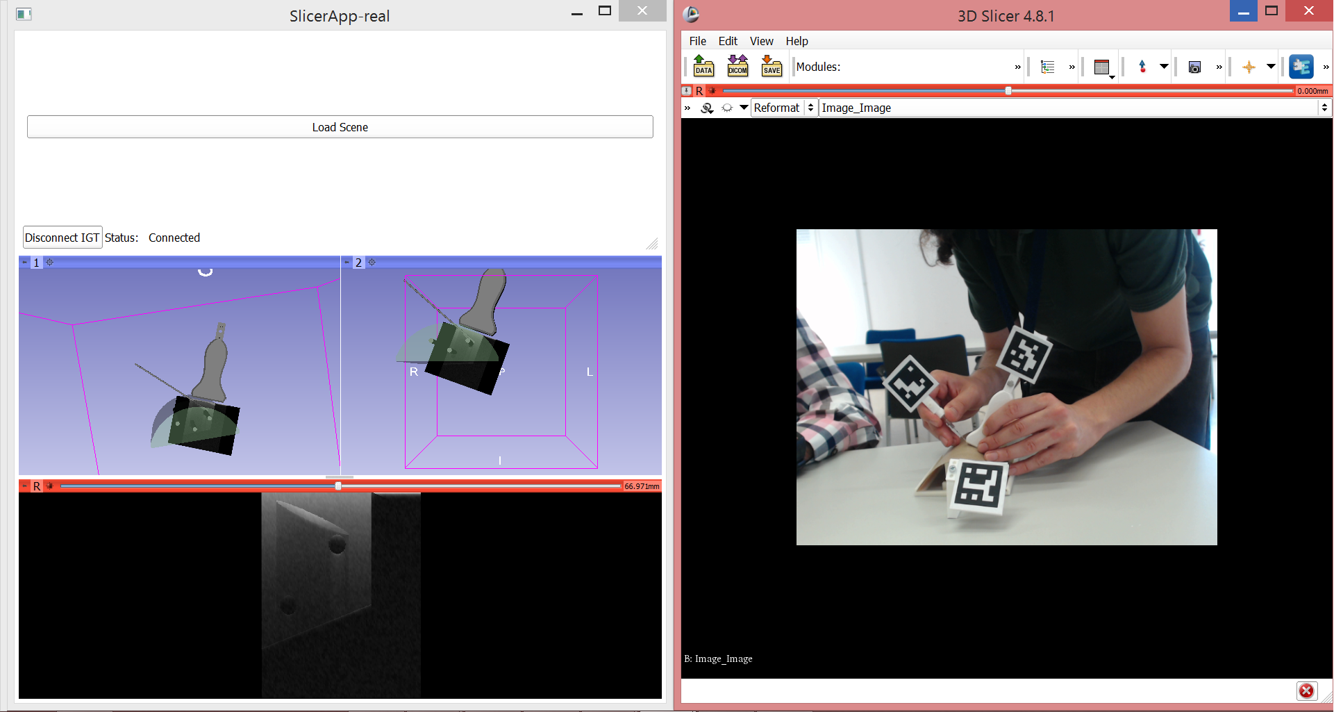 In second proposal, we developed the user interface in Guidelet module after the Perklab team’s suggestion. This guidelet is better suited to real-time applications and, hence, we decided to implement this alternative solution. The user interface is based on the template provided by the Guidelet module.