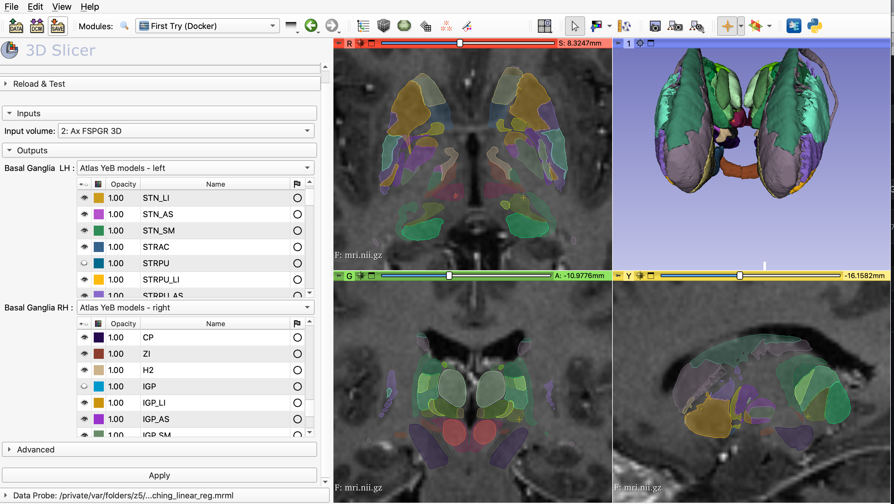 The YEB Atlas is a Basal Ganglia atlas used in routine clinical practice at the Pitié Salpêtrière Hospital in DBS-related procedures, both preoperatively (planning/targeting) and postoperatively. It is also widely used in multicenter research studies. We cannot share the atlas as a fully open free atlas because it is bound to Medtronic by a strict license agreement. That’s why in 2021, we set up a web service for the YEB atlas that allows to get deformed atlas regions on the uploaded anatomical MRI in NIFTI format. WEB PAGE.