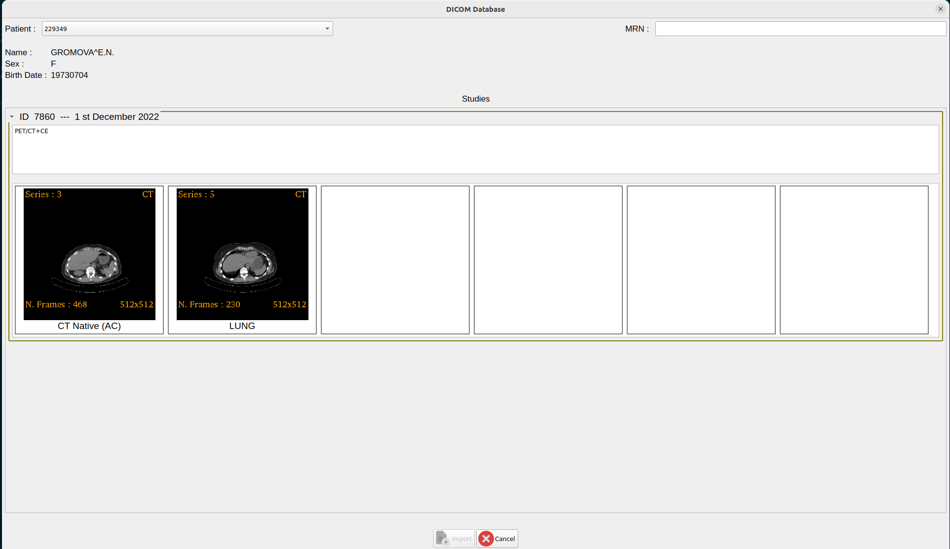The user interface would render series thumbnails so the users can easily navigate the DICOM database